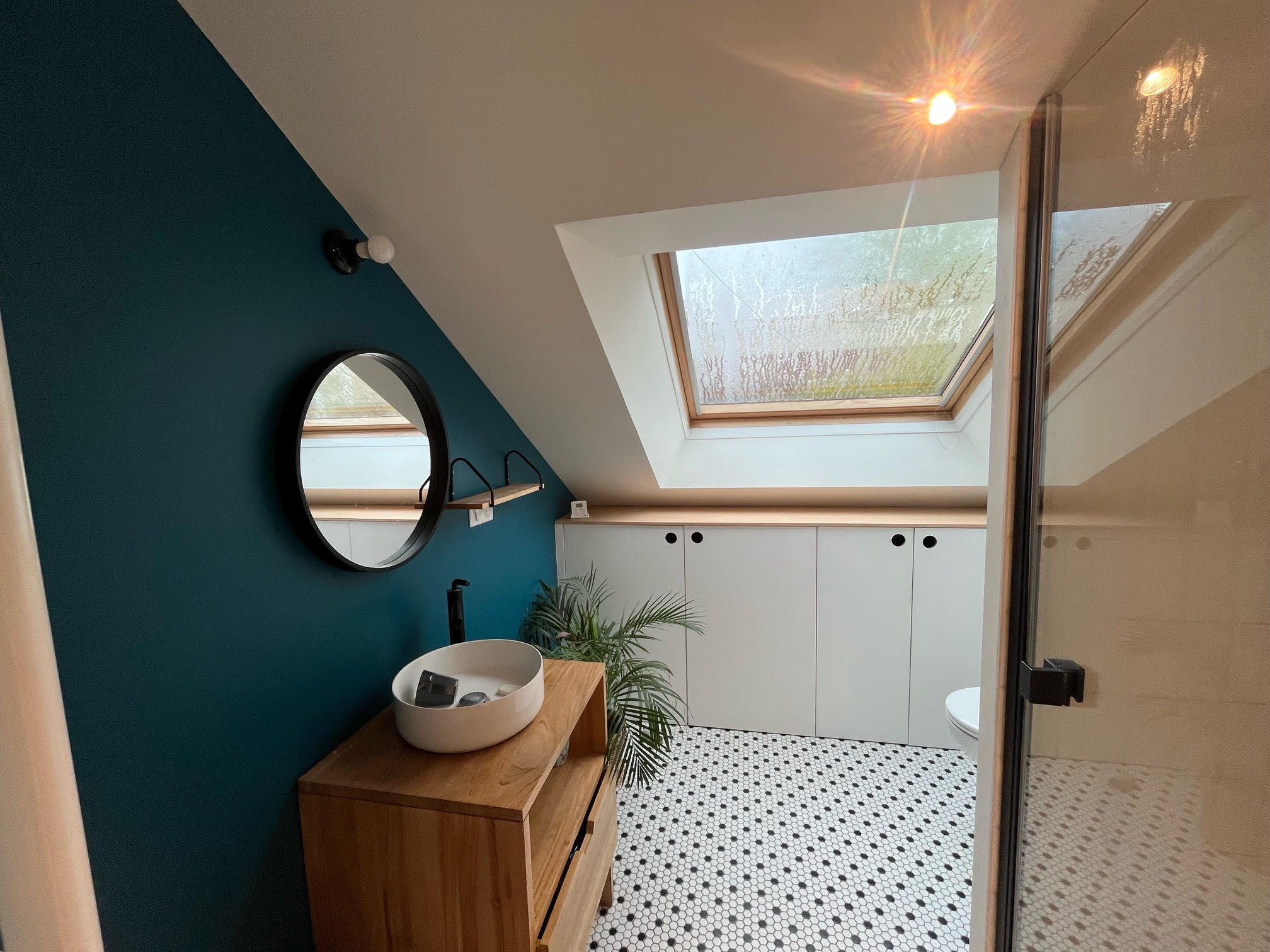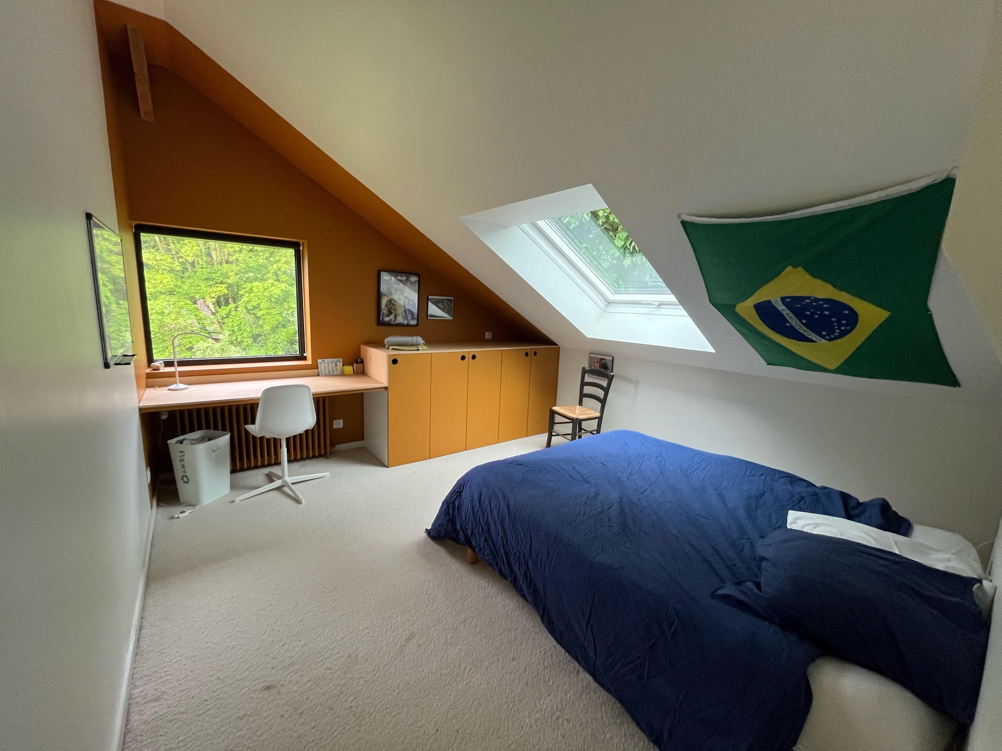 Les étudiants sont accueillis dans une chambre confortable et bien équipée (lit, bureau, rangements). La salle de douche est partagée avec la famille et la cuisine est accessible.